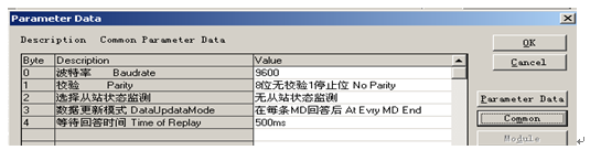下一个要注意的地方就是和MODBUS通讯接口的设置,在“Parameter Data”→“Common”菜单中可以设置,参看图3 。