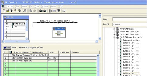1、 新建一个项目,加载GSD文件DSCOM_11,添加主站CPU315-2DP,添加从站PB-B-CANopen_Master/v11,设置站地址为19,如图3-1所示