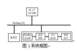 DSP 2812是作为变频控制系统的核心处理器,它与现场DSP之间通过双口RAM进行数据交换。现场DSP则通过Profibus总线桥和Profibus网络进行连接。这样DSP就可以和现场的Profibus网络进行数据的无缝交换:通过该网络一方面可以读取PLC发出的指令和调试人员或者操作人员通过触摸屏发出的指令;另一方面可以将变频系统的工作状态如电流、电压、速度给定、实际速度反馈、故障代码等信号通过Prifibus网络传输到PLC和触摸屏中,触摸屏以状态指示灯、实际数据、曲线等形式进行直观的显示,PLC则对实时工况进行分析并给出相应的指令。