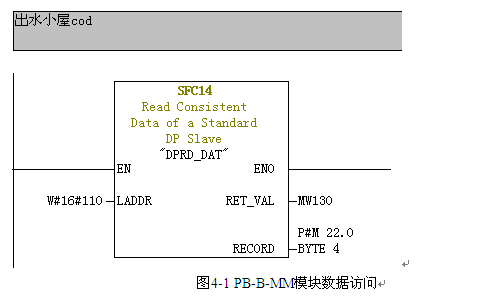 以第一个通道(出水COD)为例,如上图3-3地址为I 272,故十六进制地址为110。使用SFC14访问,将数据保存在以P#M22.0开始的4字节地址中。第二通道(出水氨氮)地址为I 276十六进制地址为114H,数据块起始地址P#M26.0,第三、四、五通道则以此类推。PB-B-MM模块数据访问见下图4-1。