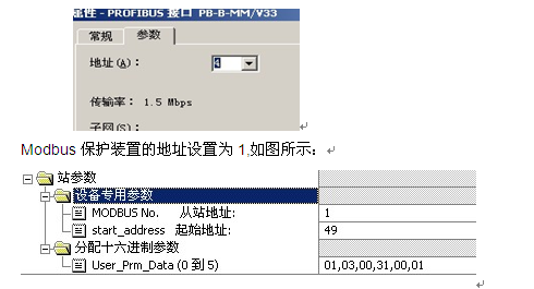 PB-B-MM/V33总线桥在本系统中的作用是Profibus与Modbus之间的相互转换。PB-B-MM/V33作为DP从站,与313C-2DP通讯;作为Modbus主站与保护装置通讯,故需设置DP从站地址,在本系统中DP从站地址设为4,如下图所示: