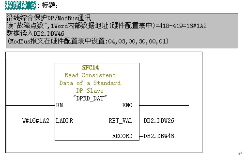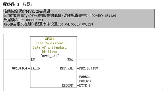 第三步:读取保护装置20个字的故障类型和故障位置信息。程序如下: