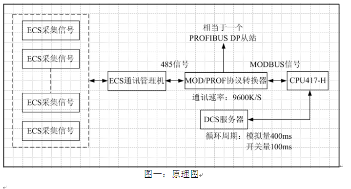 四方ECS将电气信号就近送至各通讯管理机,由通讯管理机将硬接线信号转成MODBUS信号,按RS-485通讯协议上传至DCS。信号上传时,由不同的通讯管理机分别处理电气信号的A,B两侧。例如,6KV电气系统A侧的点由通讯管理机A处理, B侧信号则由通讯管理机B处理,以达到将危险分散的目的。DCS侧各DPU所在PROFIBUS总线按工艺系统,分别接入冗余的一对协议转换桥(负责将MODBUS485信号转换成PROFIBUS信号)来接收ECS 信号,完成MODBUS信号与PROFIBUS总线的对接,协议转换桥相当于PROFIBUS总线上的一个DP从站。北京彩神ll购彩大厅-彩神购彩购彩大厅-welcome彩神彩神-彩神8争霸登录入口-网信welcome彩票彩神-彩神welcome购彩中心-彩神8购彩-彩神争8谁与争锋app科技创新有限公司提供相应GSD文件。