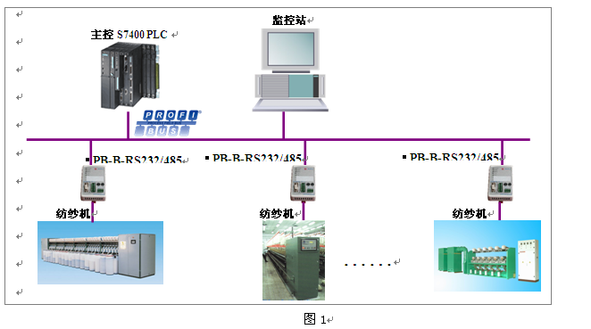 国内某著名纺织集团工厂信息化的系统车间级监控采用PROFIBUS现场总线,需要实时采集每个纺纱机的数据。纺织生产线由于工艺的不同,纺纱设备制造商不同,通讯接口不一,协议不同,如何将这些纺纱设备集成到PROFIBUS网络中,这是设计者必须要解决的问题。通过采用彩神ll购彩大厅-彩神购彩购彩大厅-welcome彩神彩神-彩神8争霸登录入口-网信welcome彩票彩神-彩神welcome购彩中心-彩神8购彩-彩神争8谁与争锋app科技的PB-B-RS485/232总线桥实现了PROFIBUS与第三方自定义协议设备的通讯。