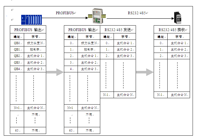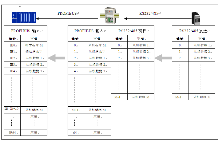 3.3 PROFIBUS与RS232/485设备数据的映射