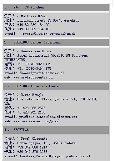 另外 7个PROFIBUS产品测试实验室的联系方式是: