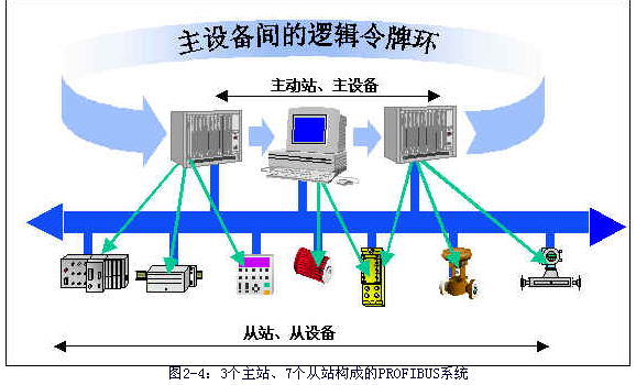 (4) 令牌传递程序保证每个主站在一个确切规定的时间内得到总线存取权(令牌)。在PROFIBUS中,令牌传递仅在各主站之间进行。