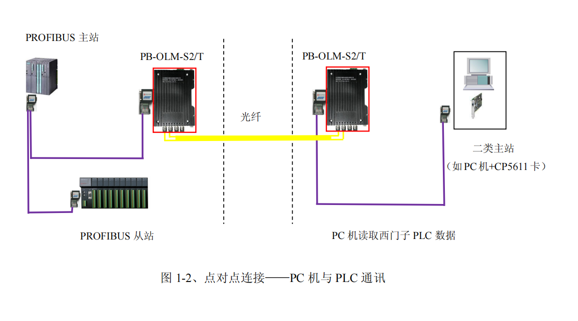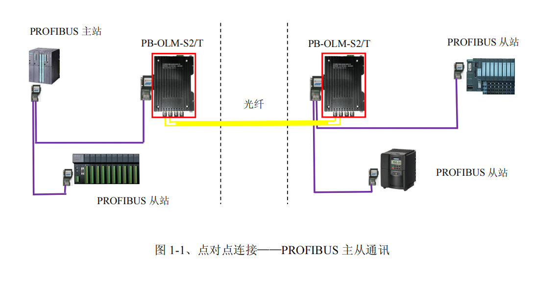 转换,在发送端将 PROFIBUS 电信号转为光信号,通过光纤将 PROFIBUS 信号传送到接收端,然后再将接