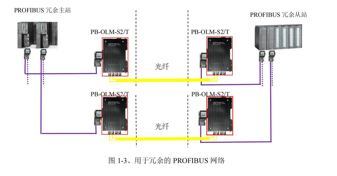 由于现场 PROFIBUS 设备一般不具备光纤通讯功能,因此需要一款协议网络部件实现 PROFIBUS 链路