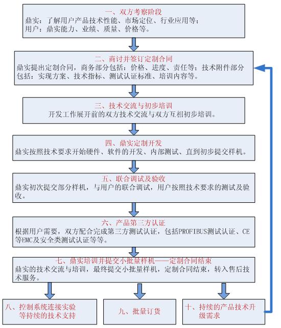 业务模式:定制开发、批量供货、持续的技术支持、产品技术升级与服务。