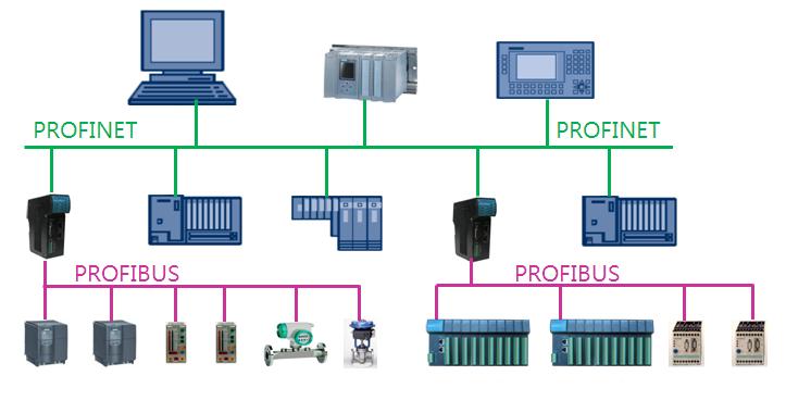 PROFINET作为PROFIBUS的升级技术,必须考虑到保护已使用PROFIBUS用户的投资;即:必须为PROFIBUS设备与PROFINET系统连接提出解决方案。国际PI为此提出的解决方案是:使用PROFINET/PROFIBUS(以下简写为PN/PB)网关实现PROFIBUS设备集成并连接到PROFINET系统中。如下图:使用PN/PB网关实现PROFIBUS设备集成到PROFINET系统中。