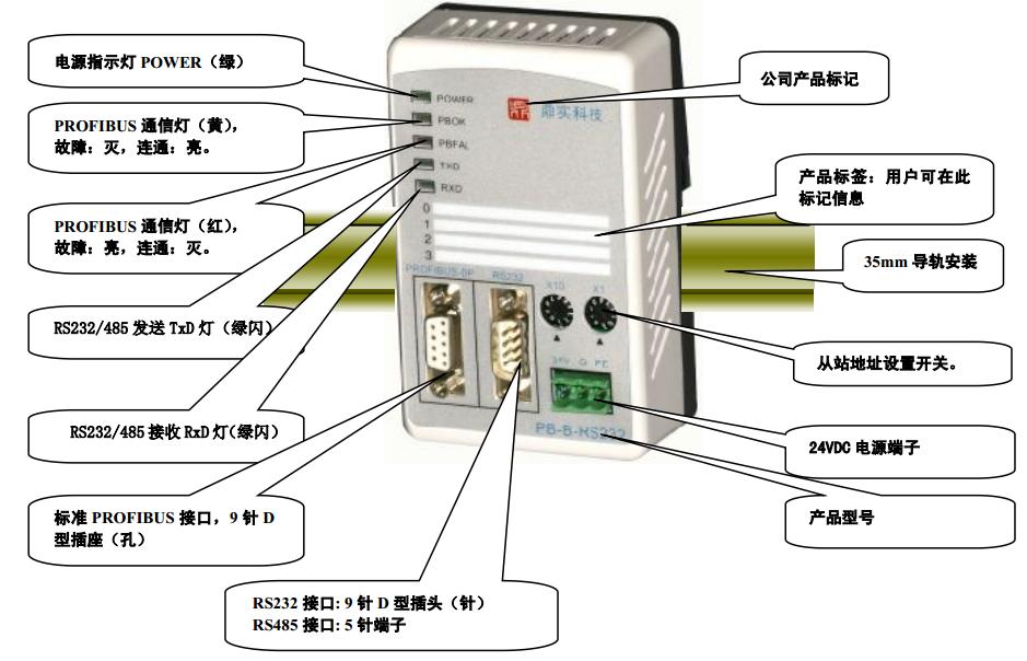 基于RS232/485/422等串口自由协议设备接入PROFIBUS网络,成为PROFIBUS主站系统的从站 |