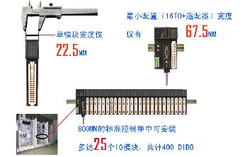 •最小配置(16IO+适配器)宽度仅有67.5MM,宽67.5×高125×厚115